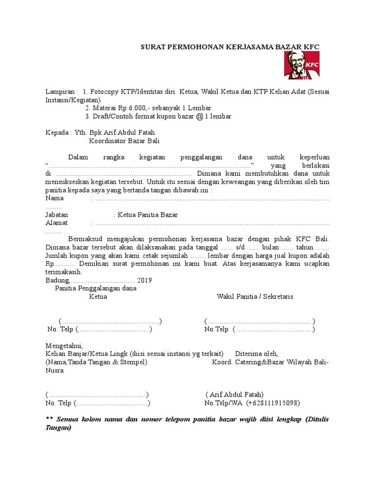 2. Surat Permohonan Kerjasama Bazar KFC