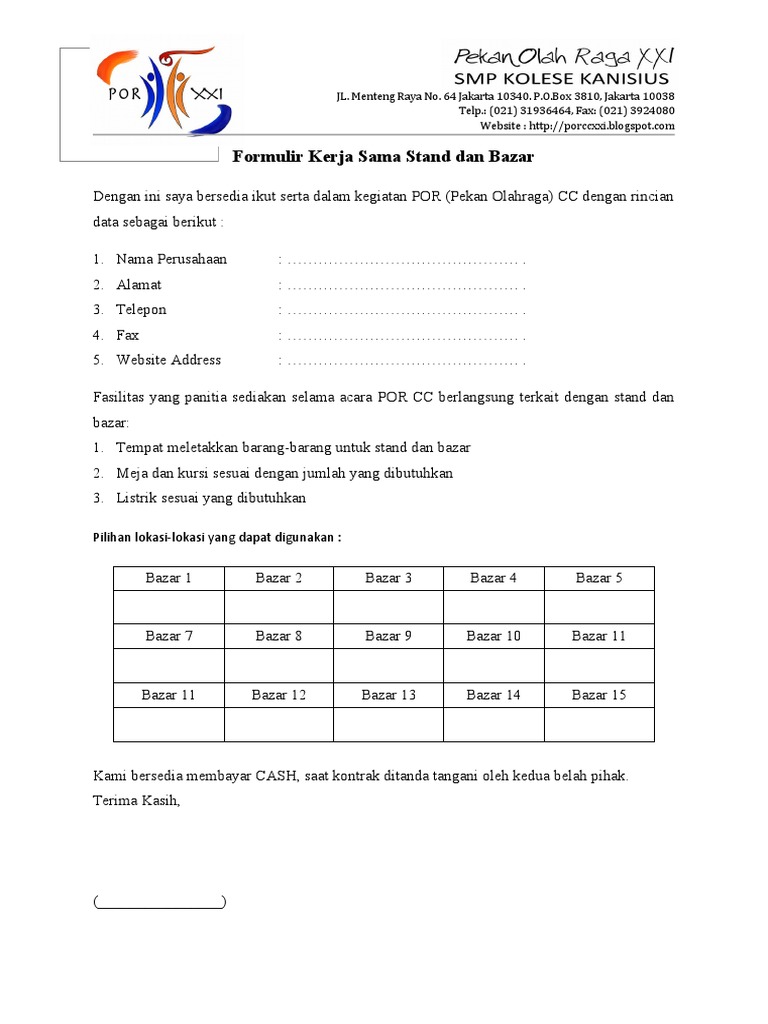 Formulir Kerja Sama Bazar Dan Stand