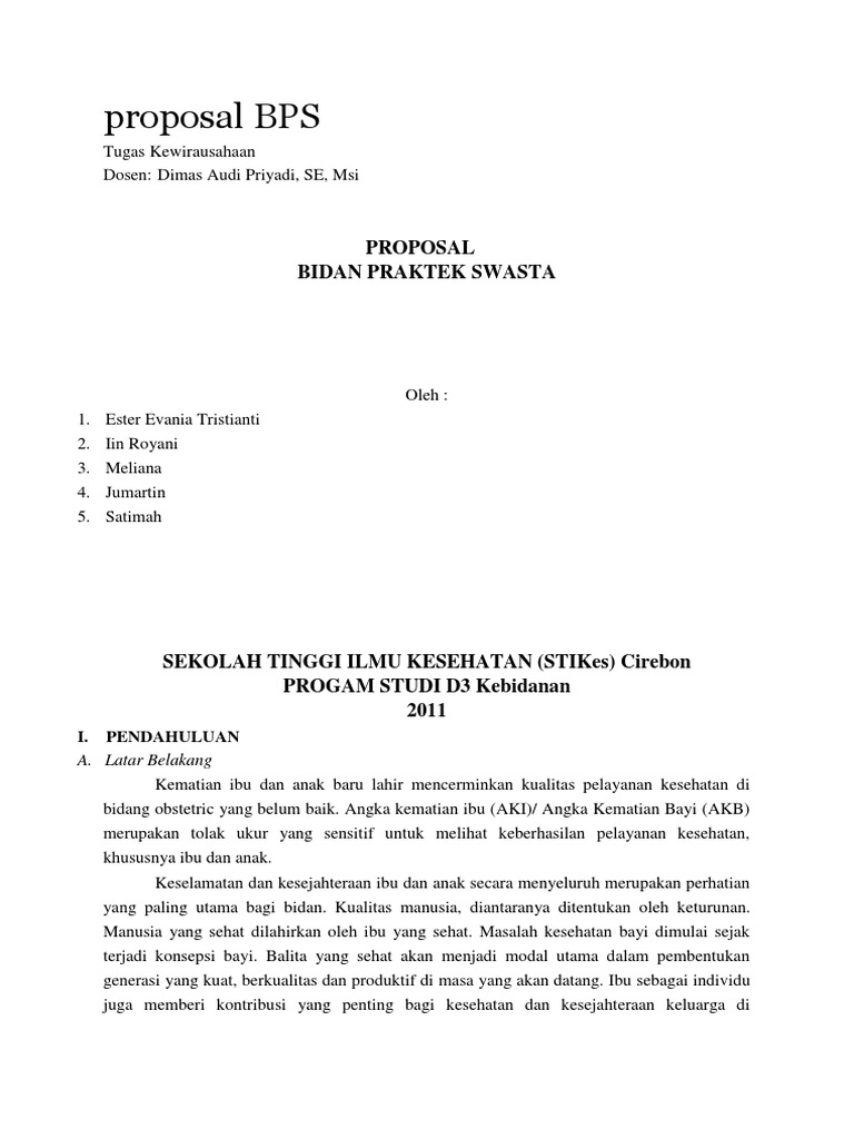 contoh proposal kewirausahaan dalam lingkup kebidanan