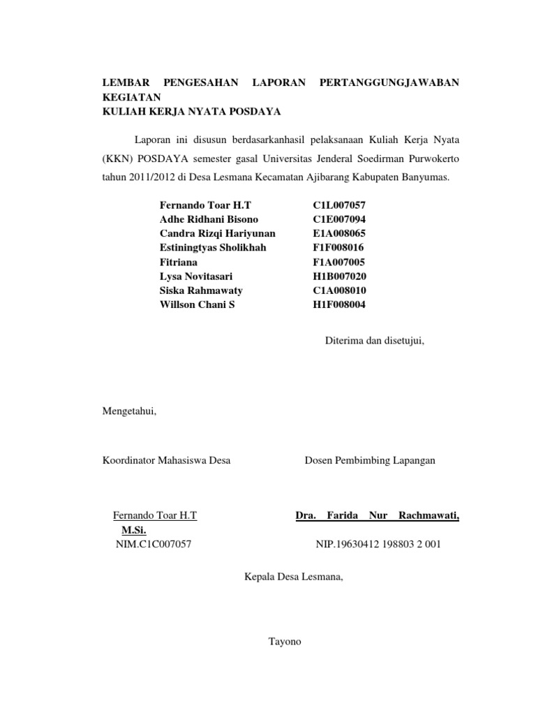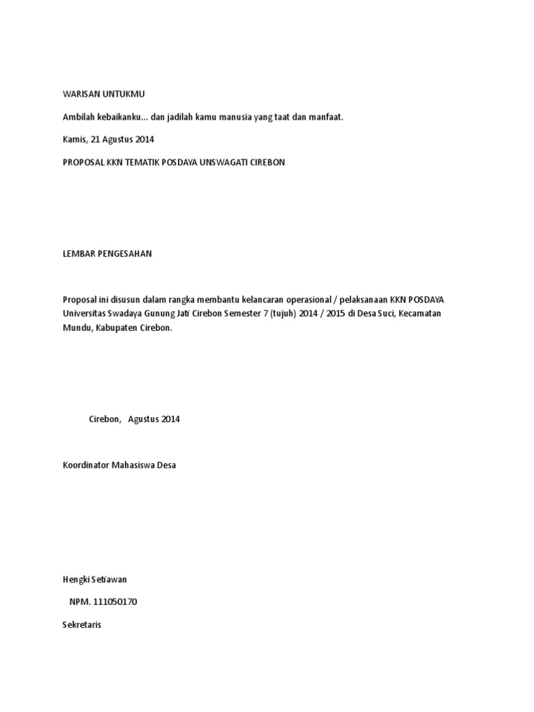 PDF) Contoh Halaman Pengesahan Proposal KKN PENGESAHAN PROPOSAL KKN | sleep walk - Academia.edu