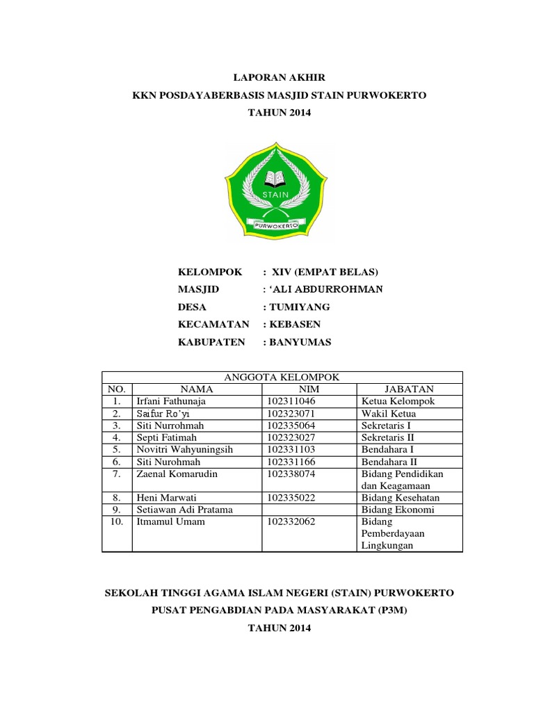 KULIAH KERJA NYATA (KKN) TEMATIK POSDAYA kkn.· KULIAH KERJA NYATA (KKN) TEMATIK POSDAYA BERBASIS MASJID UNIVERSITAS ISLAM NEGERI … Format Halaman Pengesahan Laporan KKN 4. Time - [PDF Document]