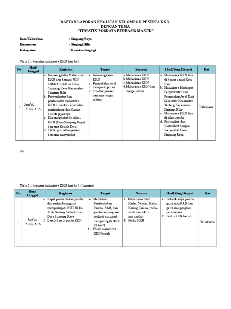 DOC) CONTOH LAPORAN KKN TEMATIK POSDAYA | Agus Stiya - Academia.edu