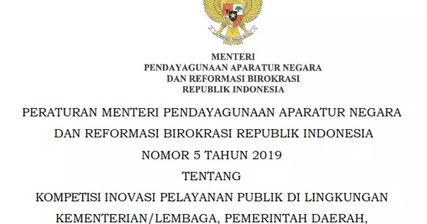 PERMENPANRB 5 Tahun 2019 Tentang Kompetisi Inovasi Pelayanan Publik Di Lingkungan Kementerian/lembaga, Pemerintah Daerah, BUMN, dan BUMD - Berkas Edukasi