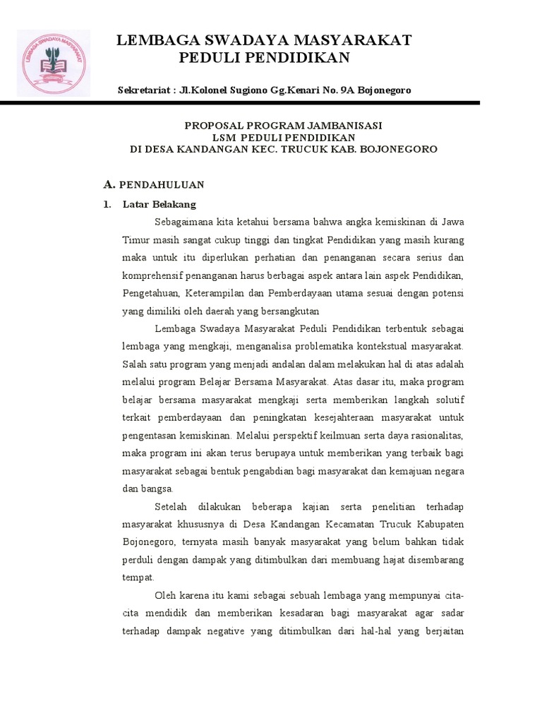 Contoh Proposal Lembaga Swadaya Masyarakat