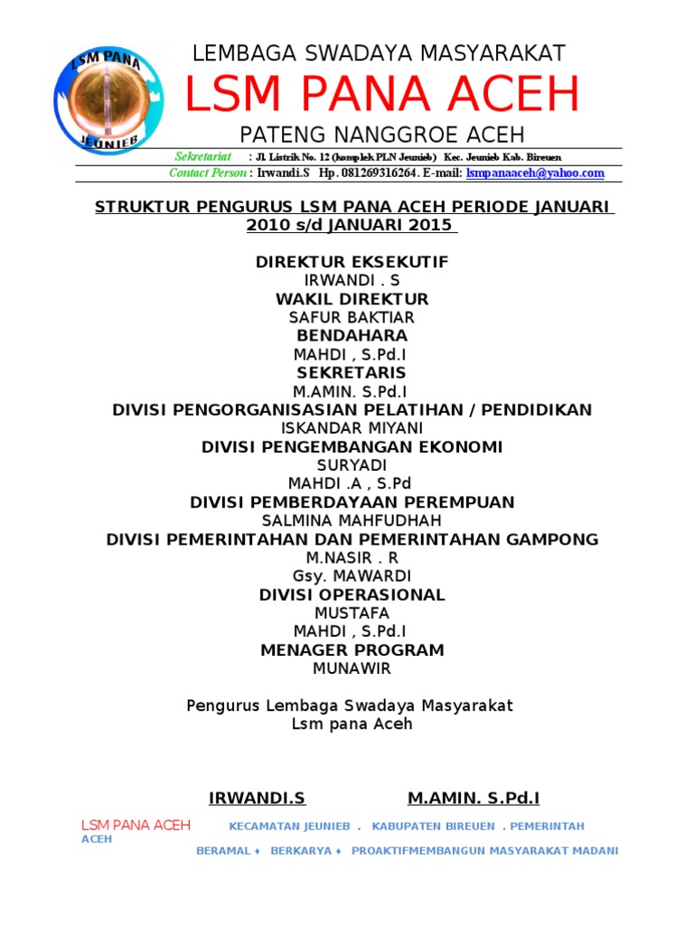 DOC) ANGGARAN DASAR ORGANISASI SOSIAL LEMBAGA SWADAYA MASYARAKAT GERAKAN PEMERHATI DAN PEMBERDAYAAN MASYARAKAT (LSM-GPPM) KOTA BONTANG KALIMANTAN TIMUR | Ucu Sunarya - Academia.edu