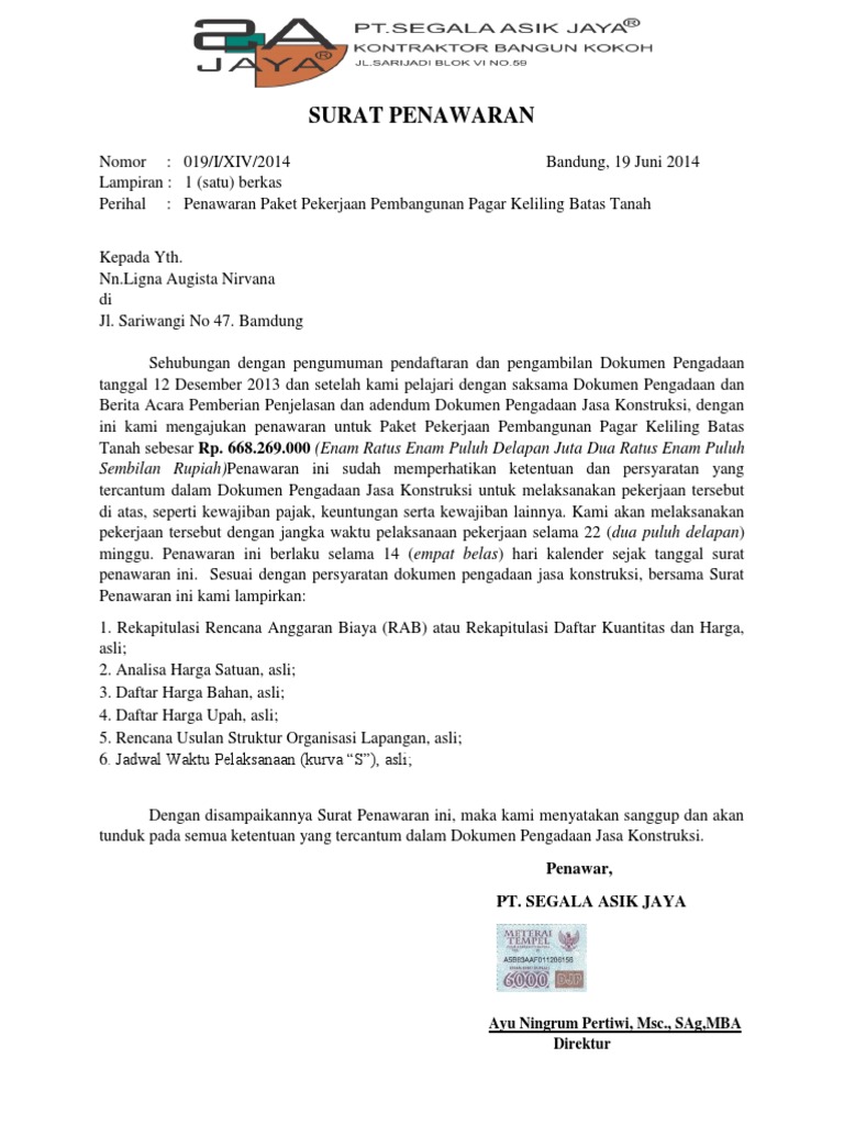 DOC) Contoh Surat Penawaran Proyek Terbaru dan Lengkap File Word | mochamad robbyn pratama - Academia.edu