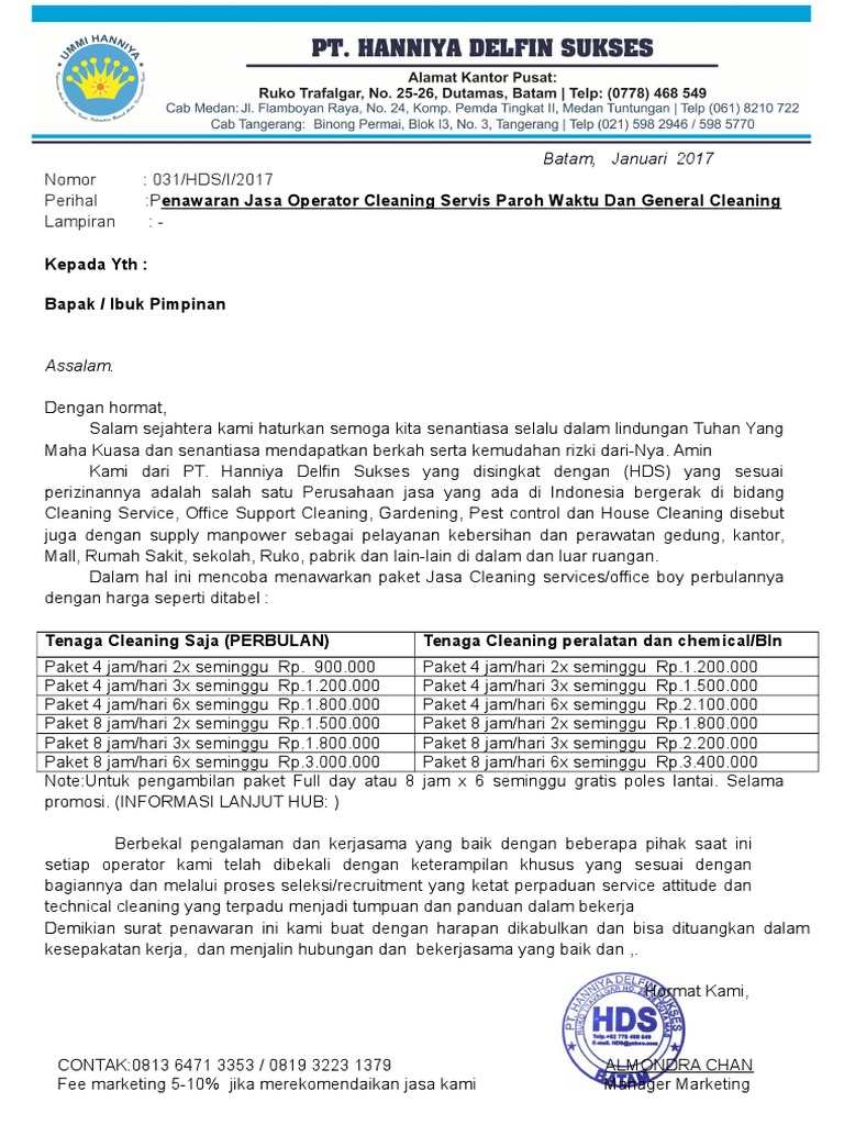 Contoh Surat Penawaran Jasa Cleaning Service - Contoh Seputar Surat