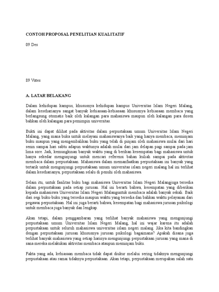 DOC) CONTOH PROPOSAL PENELITIAN KUALITATIF 09 Des 89 Votes | Edi Sumarno S.Hut - Academia.edu