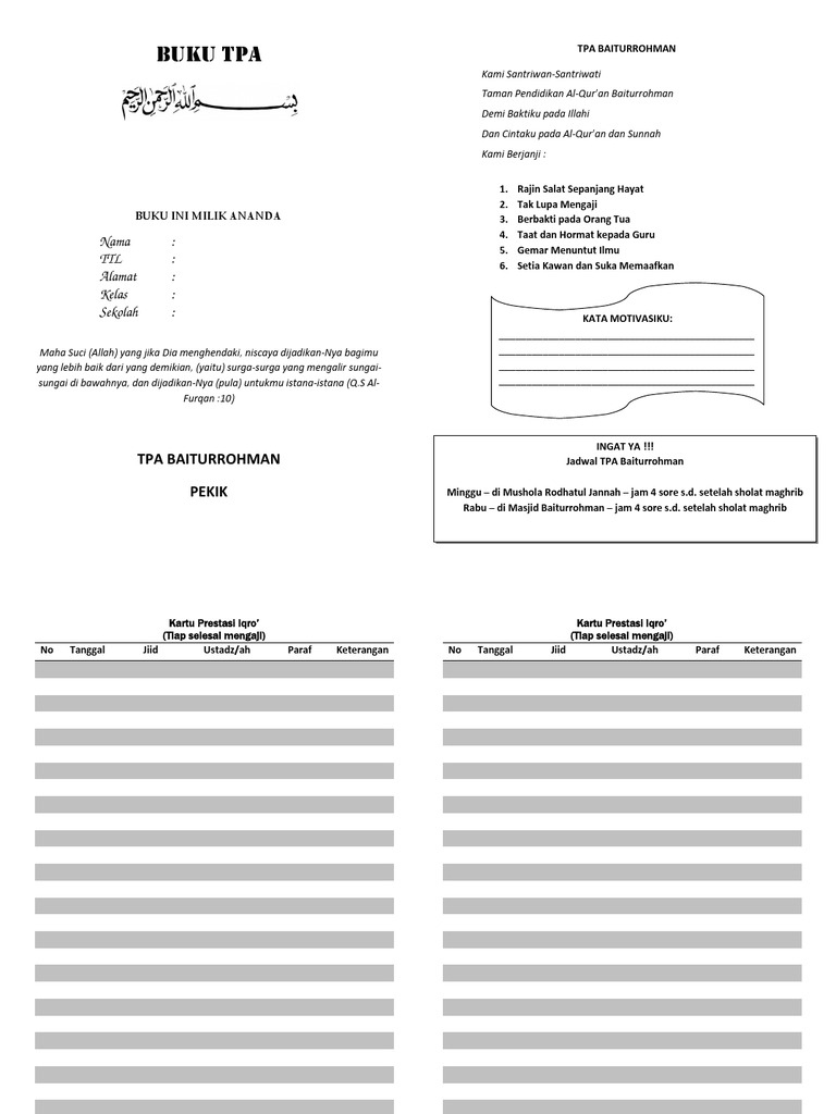 Download contoh Profil TPQ Rumah Tahfidz TQA PAUD al-Qur’an | pontren.com