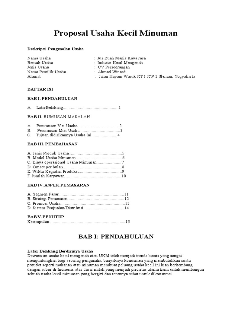 DOC) Proposal Usaha Kecil Minuman.docx | Yudith Lomakayy - Academia.edu