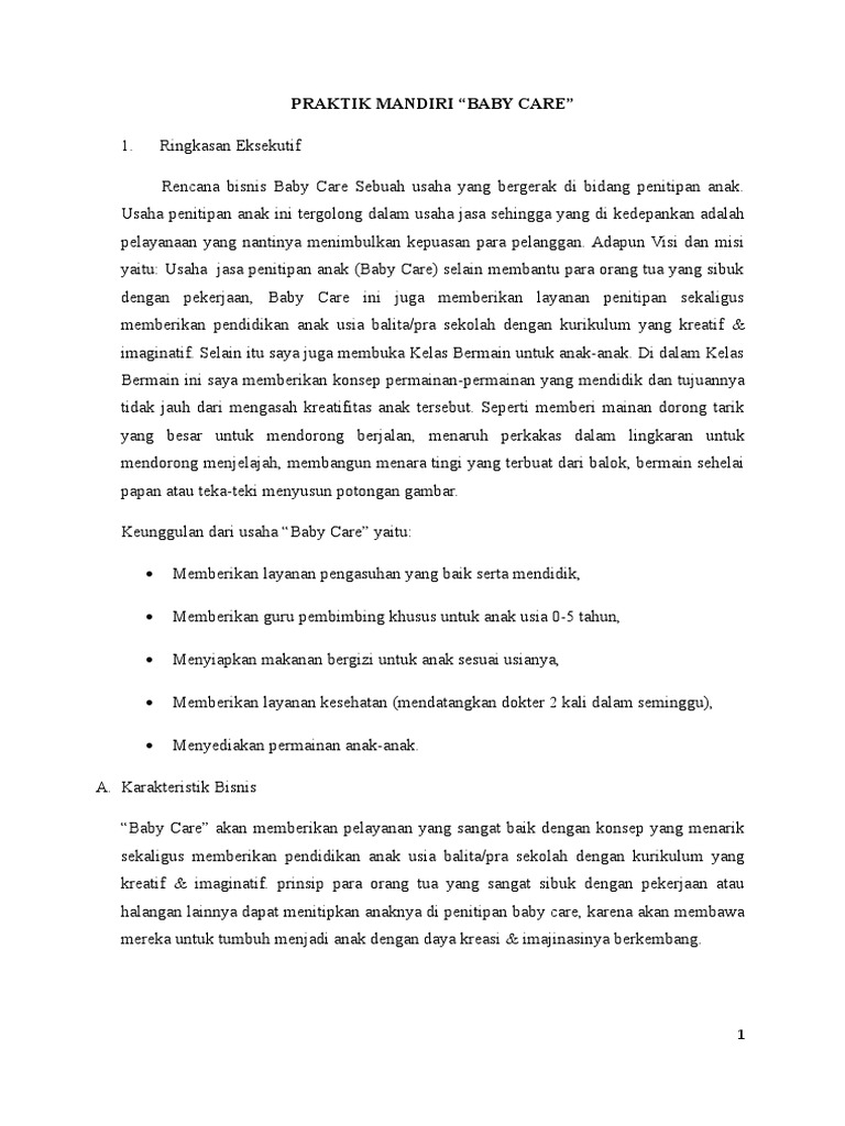 Contoh Proposal Kewirausahaan Bisnis Plan baby care