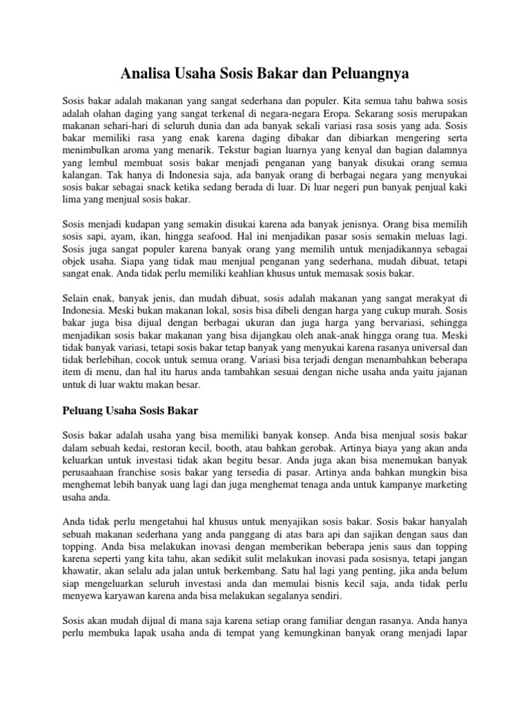 Analisa Usaha Sosis Bakar dan Peluangnya