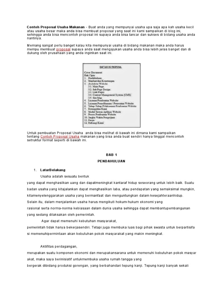DOC) Contoh Proposal usaha makanan | Rohmat Tamvan - Academia.edu