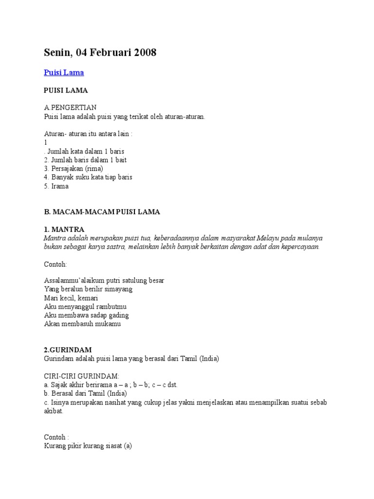 DOC) Contoh Puisi Lama Dan Pengertiannya | Boni Asri - Academia.edu