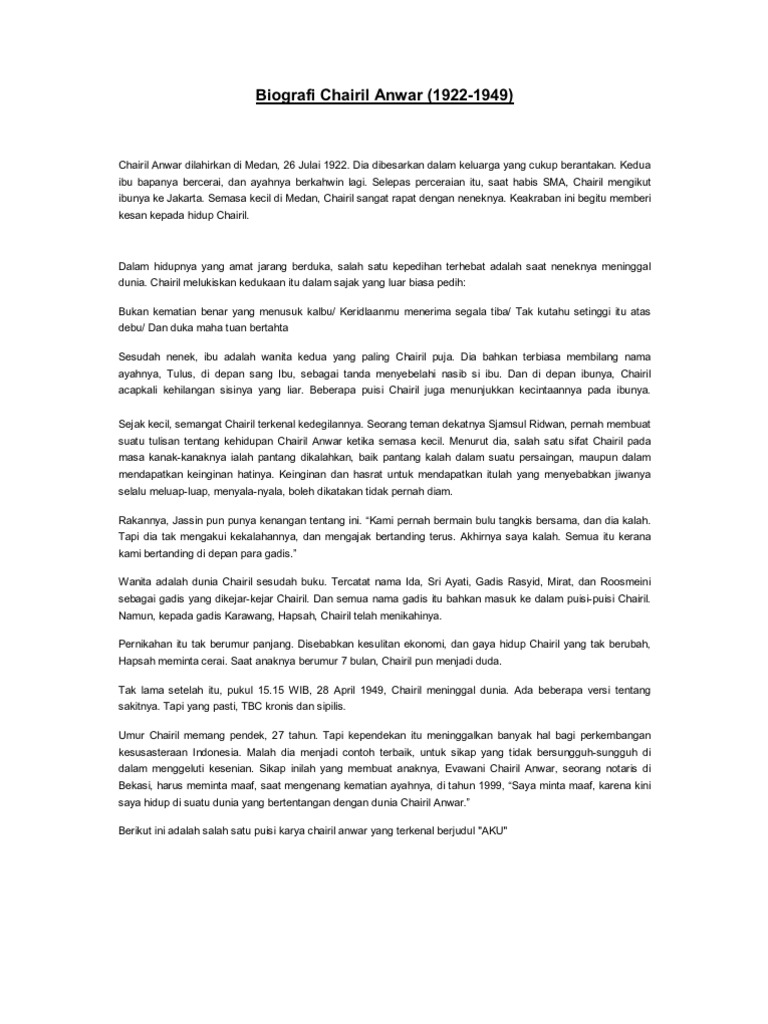 PDF) Kumpulan Puisi-puisi Chairil Anwar AKU | Riki Ersanda - Academia.edu