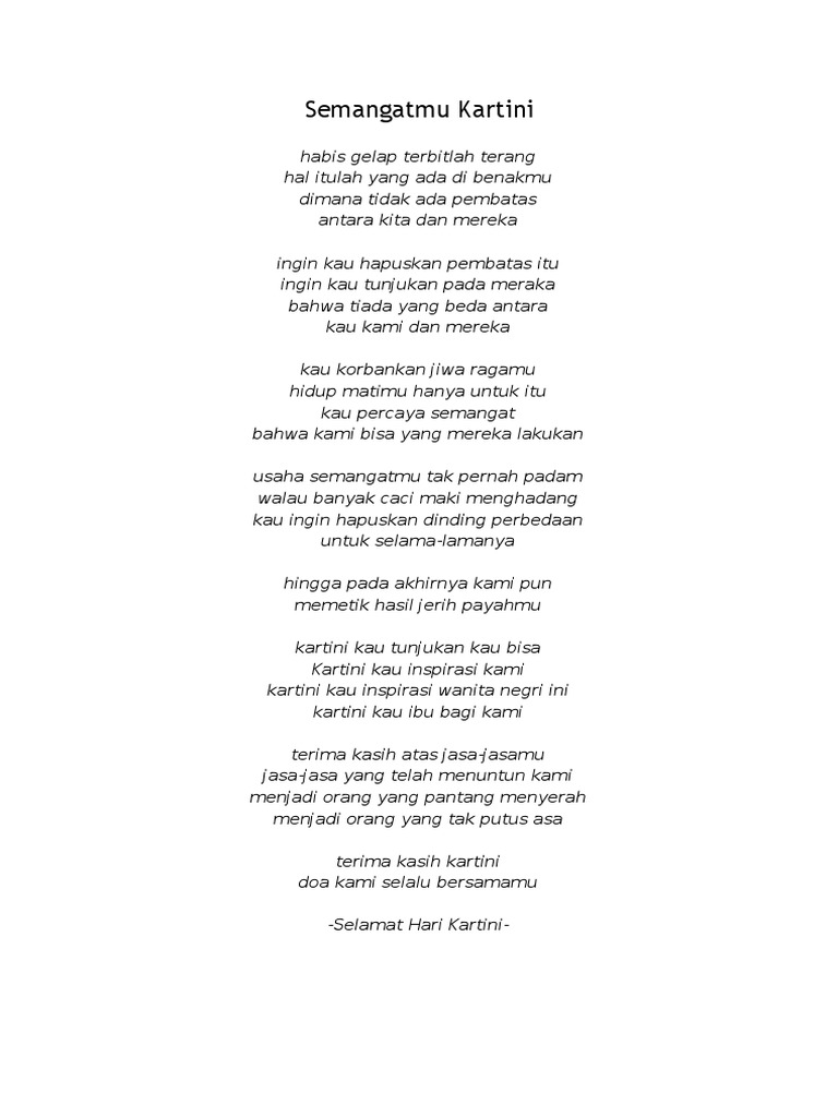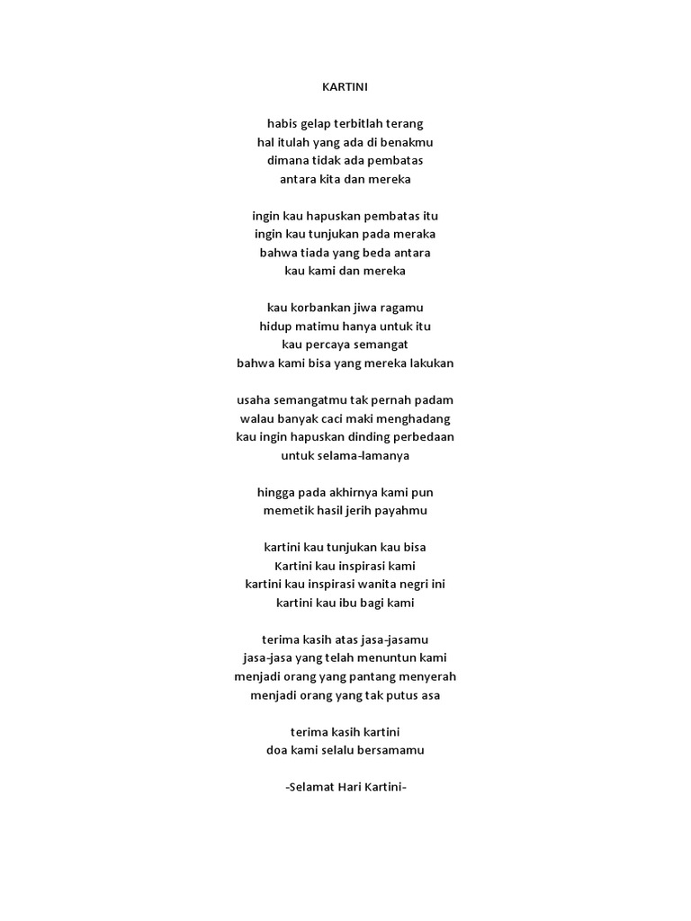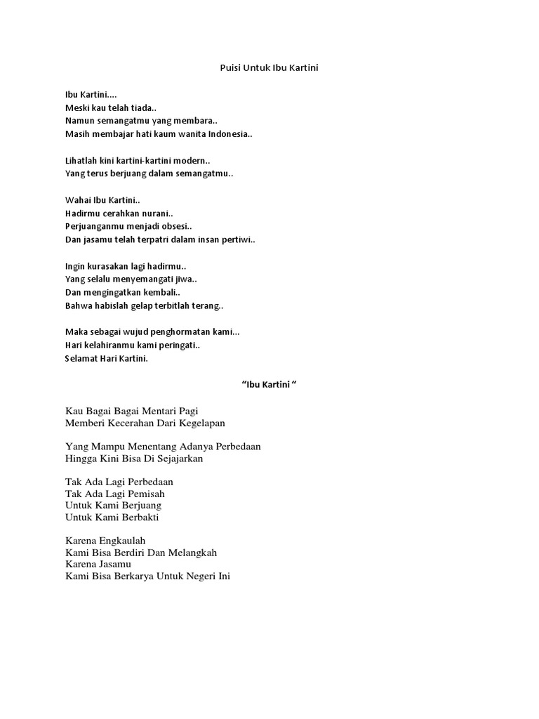 PDF) PUISI MENGENANG IBU KARTINI | Alfa widati - Academia.edu