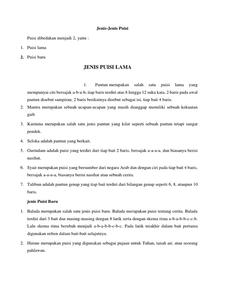DOC) ANALISIS 10 BUAH PUISI DARI KUMPULAN PUISI BULU TANGAN KARYA TAJUDDIN NOOR GANIE | Intan Puspitasari - Academia.edu