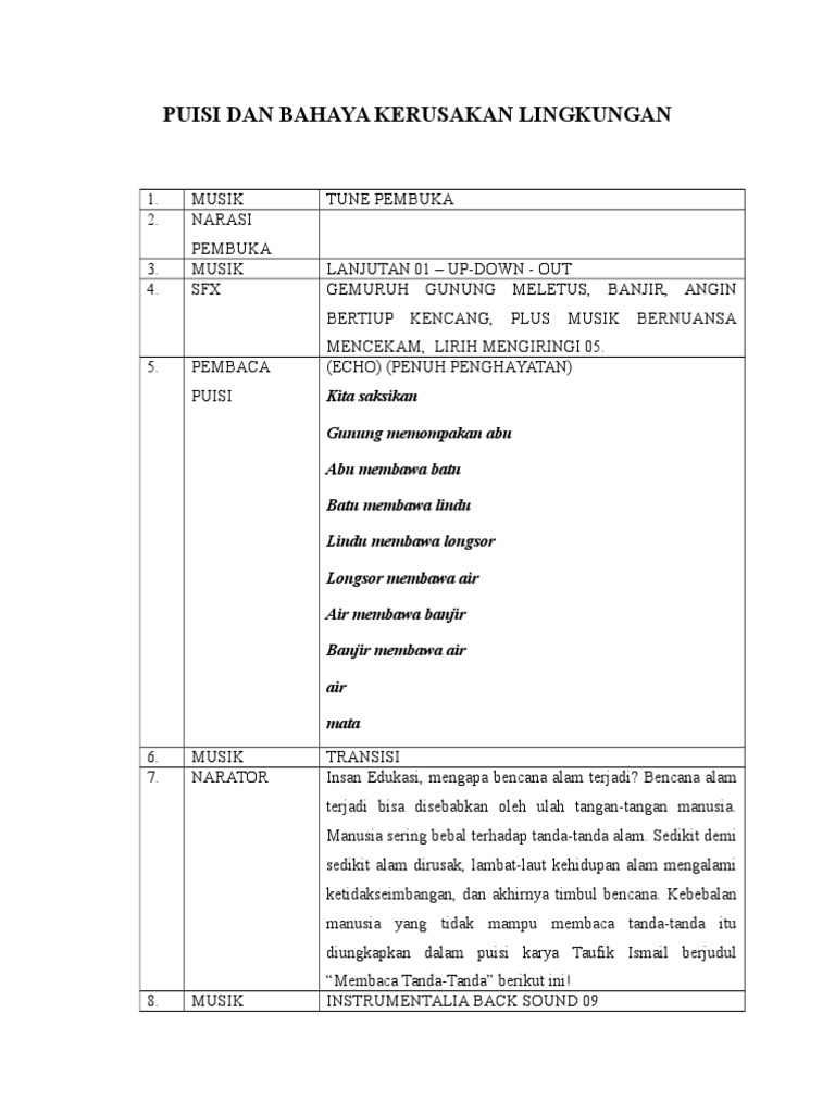 Puisi Dan Bahaya Kerusakan Lingkungan