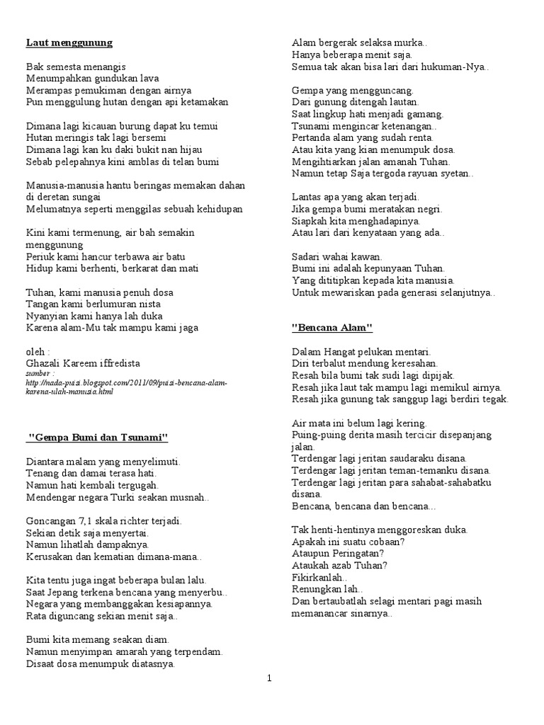 Contoh Puisi Bebas Dengan Tema Bencana Alam - Temukan Contoh