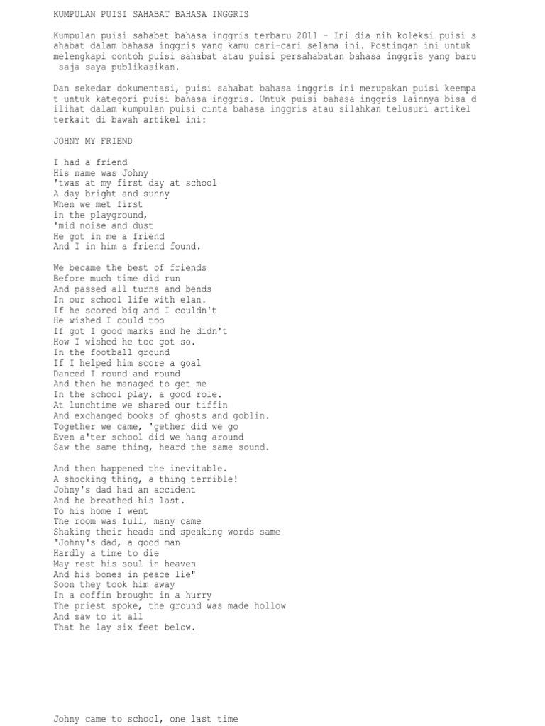 Kumpulan Puisi Sahabat Bahasa Inggris | Indonesian Language | Friendship