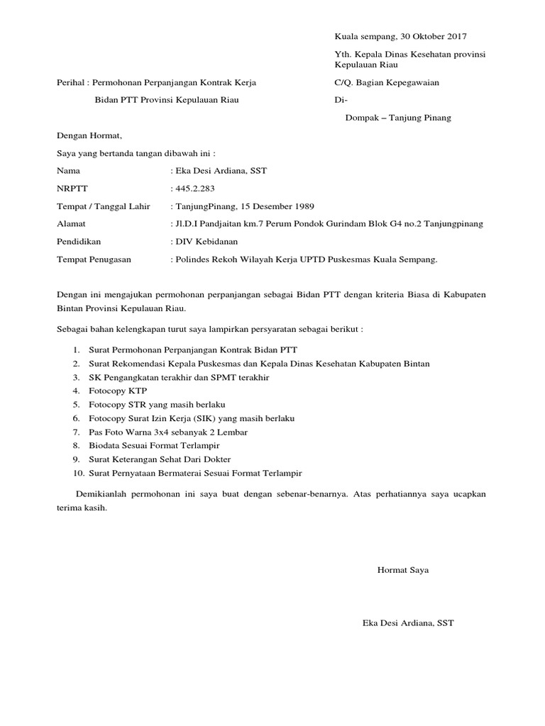 Contoh Surat Lamaran Bidan PTT | Wiki Edukasi Share
