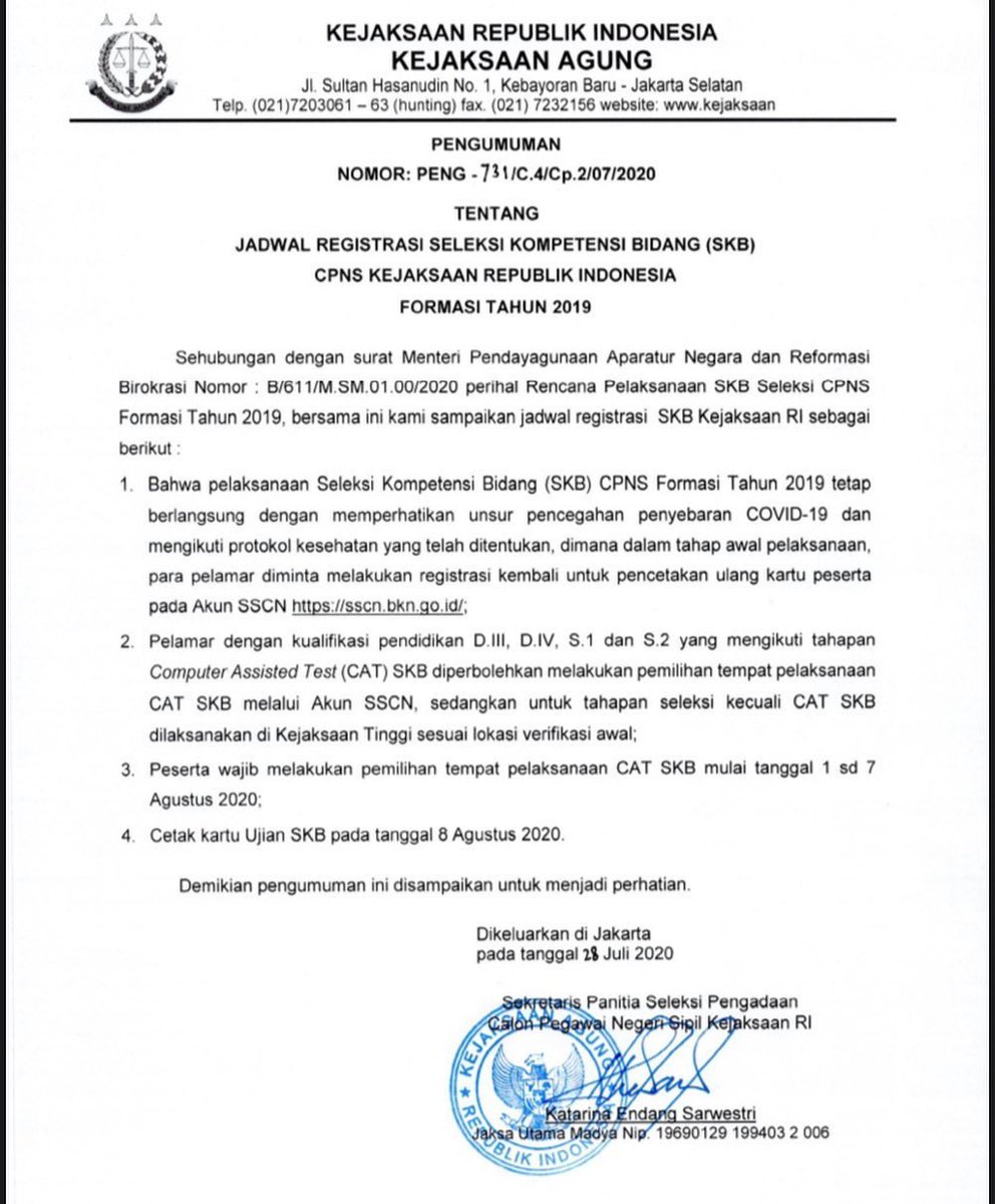Contoh Surat Lamaran dan Formasi CPNS 2018 Kejaksaan Agung, SMA dan S1 - Sekolah Kita
