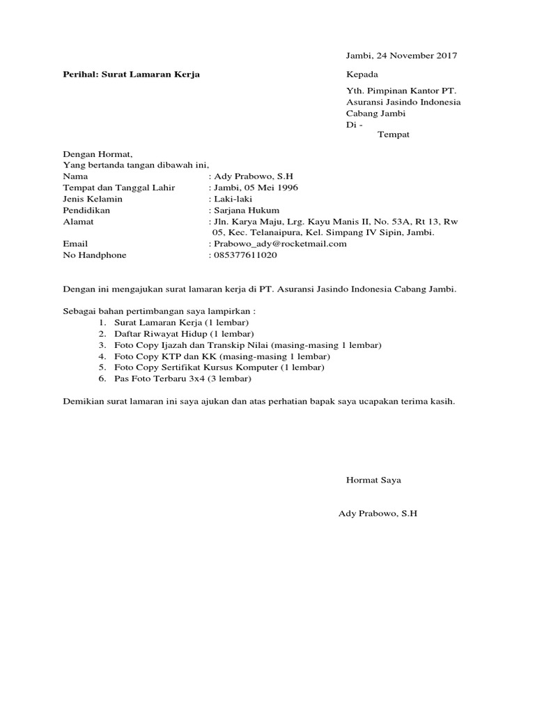 Contoh Surat Lamaran Kerja Yang Benar | KASKUS