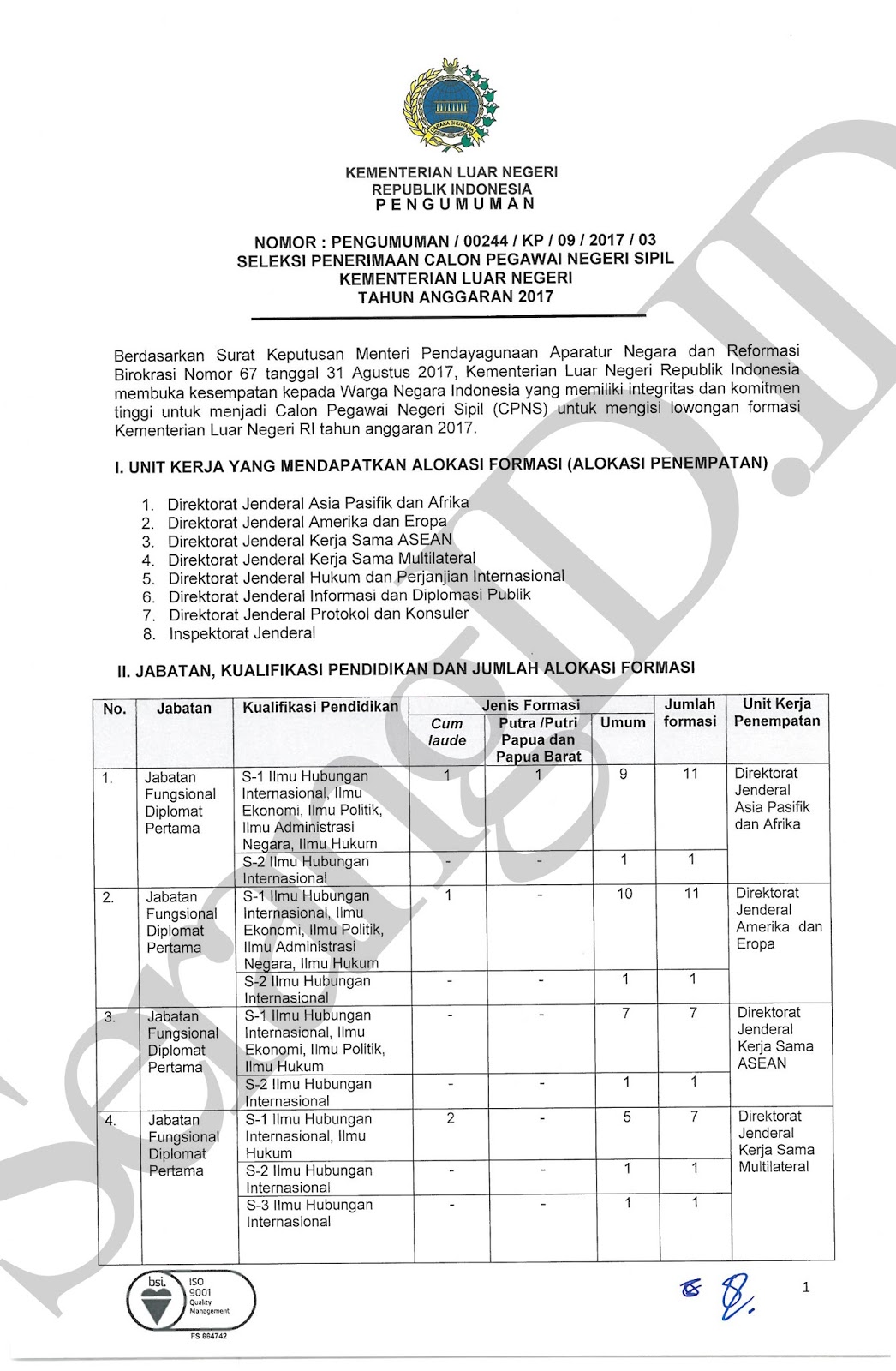 KEMENLU - Soal dan Pendaftaran CPNS Kementerian Luar Negeri 2017 | Job Fair - Lowongan Kerja 2020 Lulusan SMK - Lulusan SMA & SMP