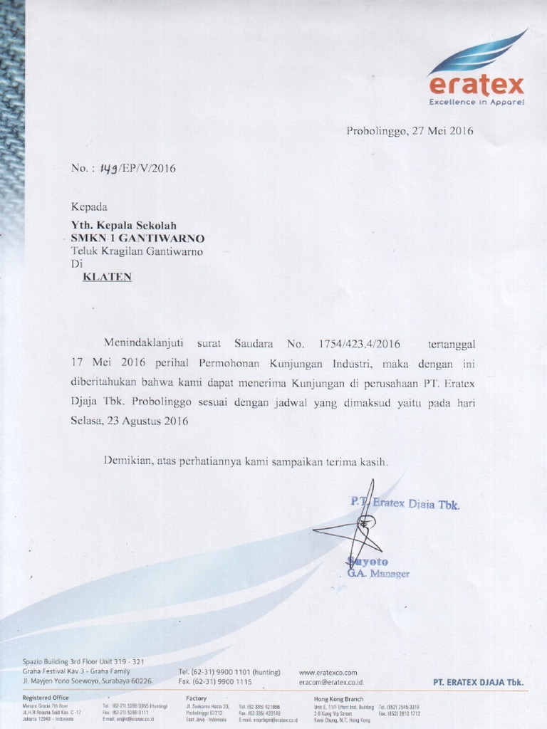 Surat Lamaran Kerja Pt Eratex Djaja - Contoh Surat Lamaran Kerja