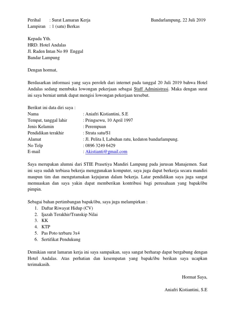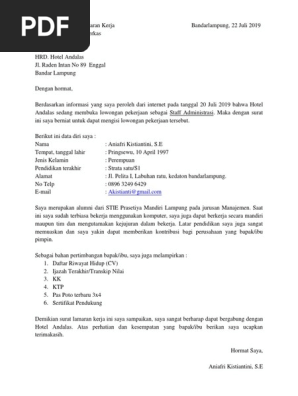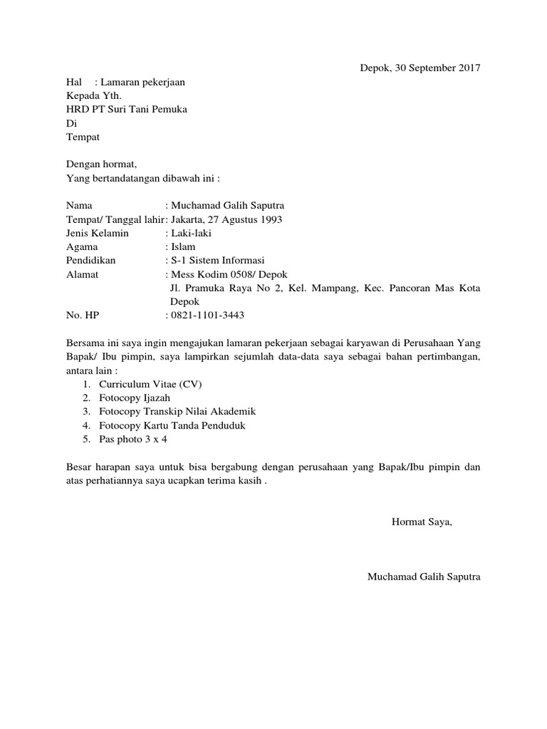 DOC) SURAT LAMARAN PEKERJAAN | mangasi lubis - Academia.edu