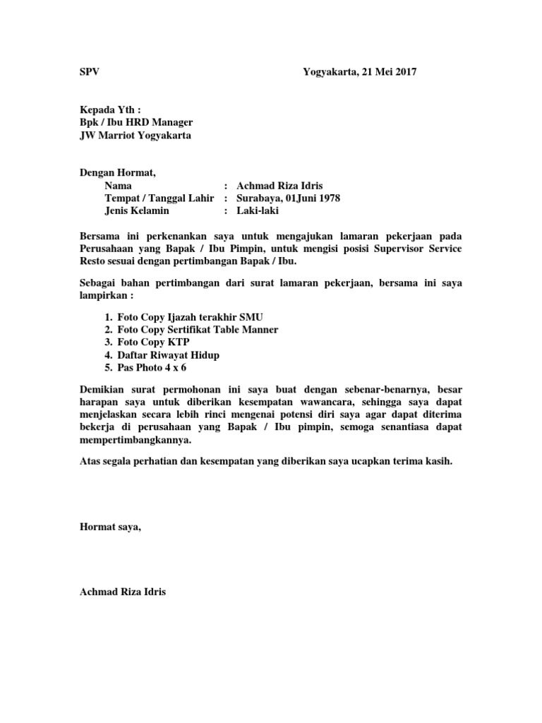 Foto Contoh Surat Lamaran Kerja Di Restoran 88 Untuk Ide Format Surat Lamaran pada post Contoh Surat Lamaran Kerja Di Restoran - Gawe CV