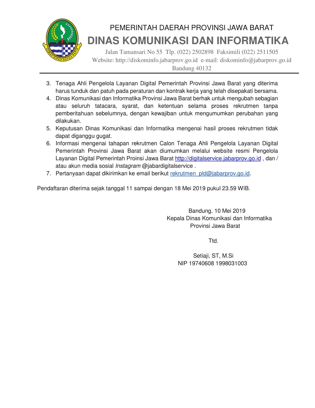 Lowongan Kerja Dinas Komunikasi dan Informatika Provinsi Jawa Barat Tahun Anggaran 2019 - REKRUTMEN LOWONGAN KERJA BULAN OKTOBER 2020