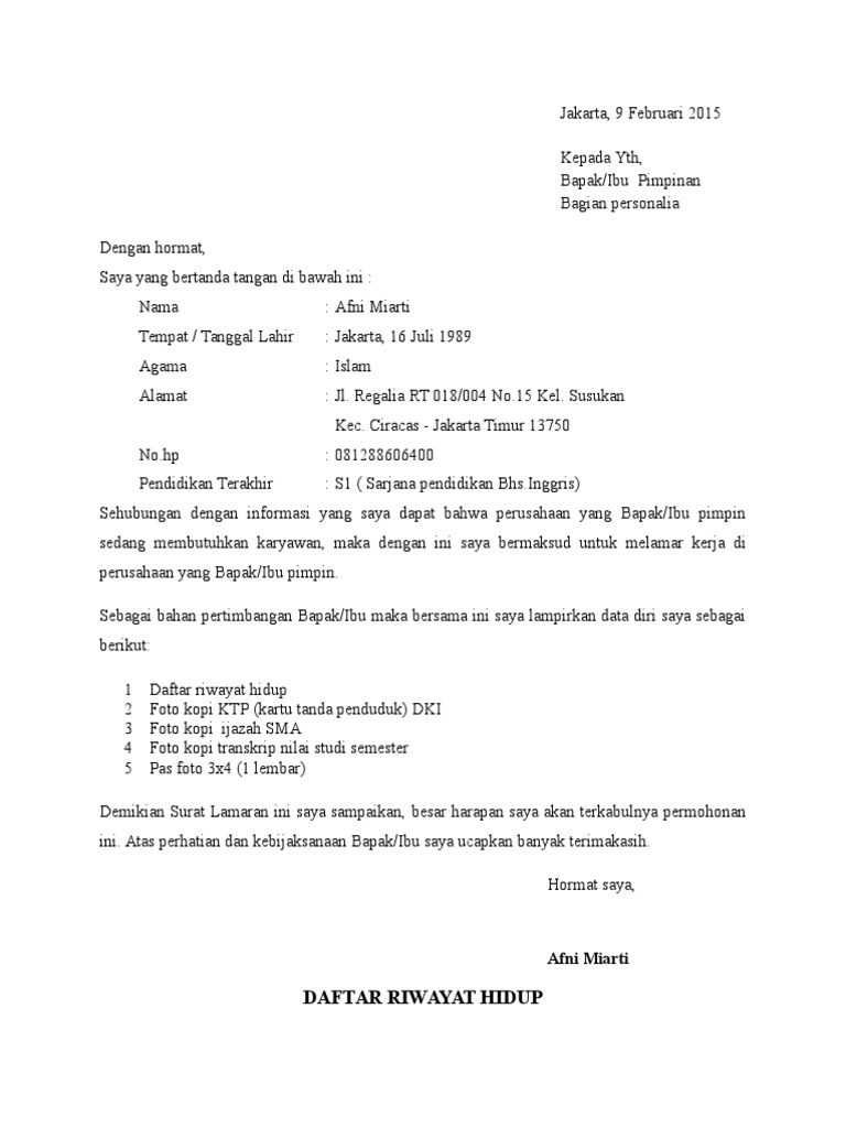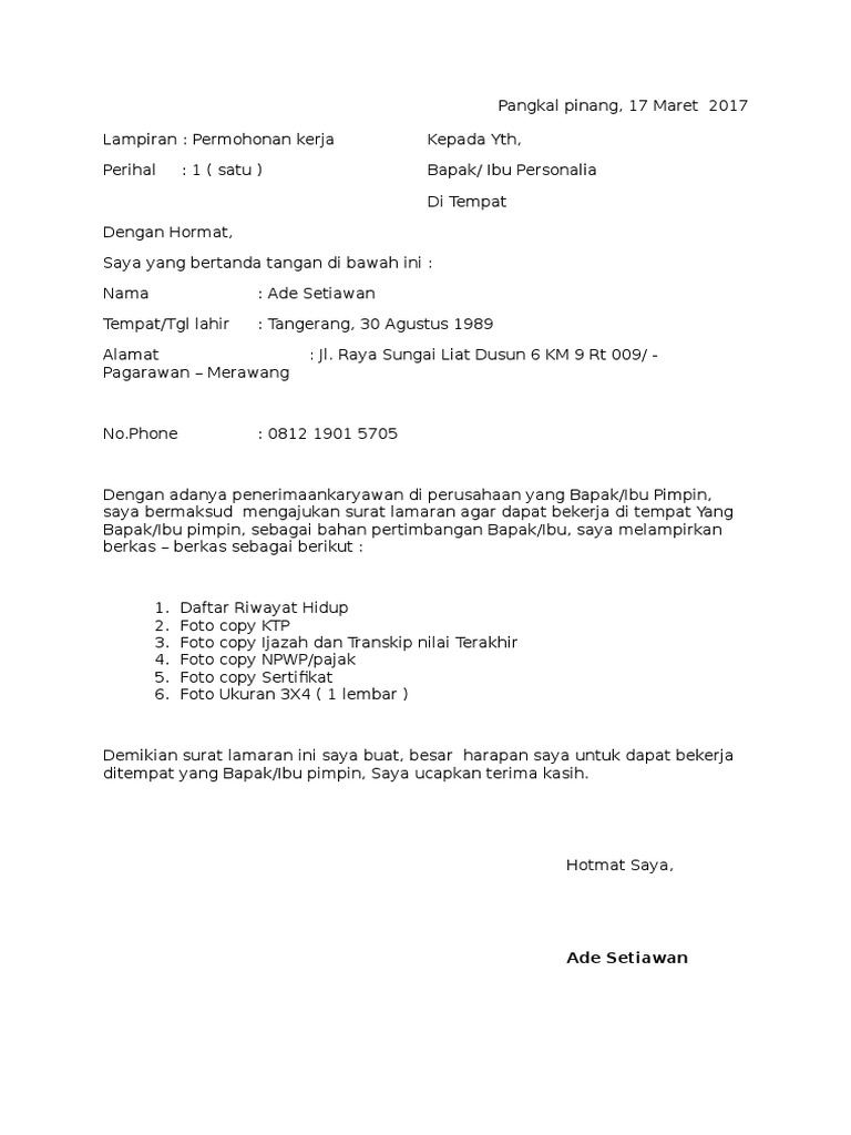 Contoh Surat Lamaran Kerja Ijazah Menyusul Gawe Cv – Cute766