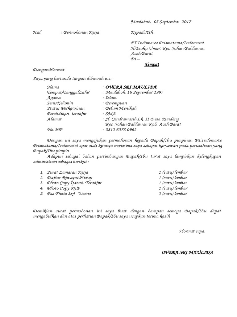 Contoh Surat Lamaran Kerja Pnm - Gawe CV