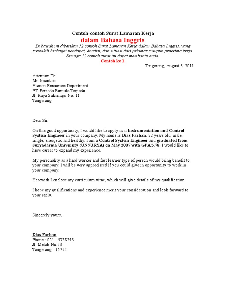 Contoh Surat Lamaran Kerja Indonesia - Gawe CV