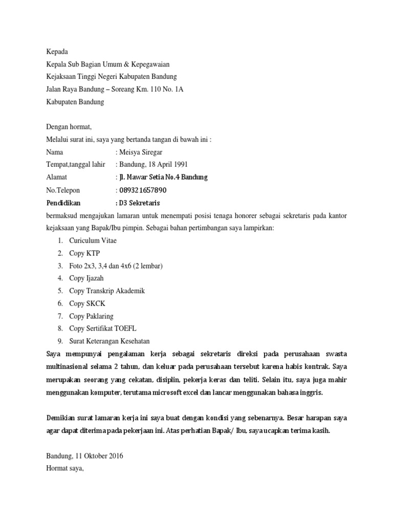 Contoh Surat Lamaran Kerja Kejaksaan Sebagai Tenaga Honorer