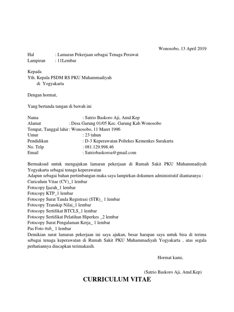 DOC) contoh surat lamaran kerja di rumah sakit 1 | Rismawati Marwa - Academia.edu