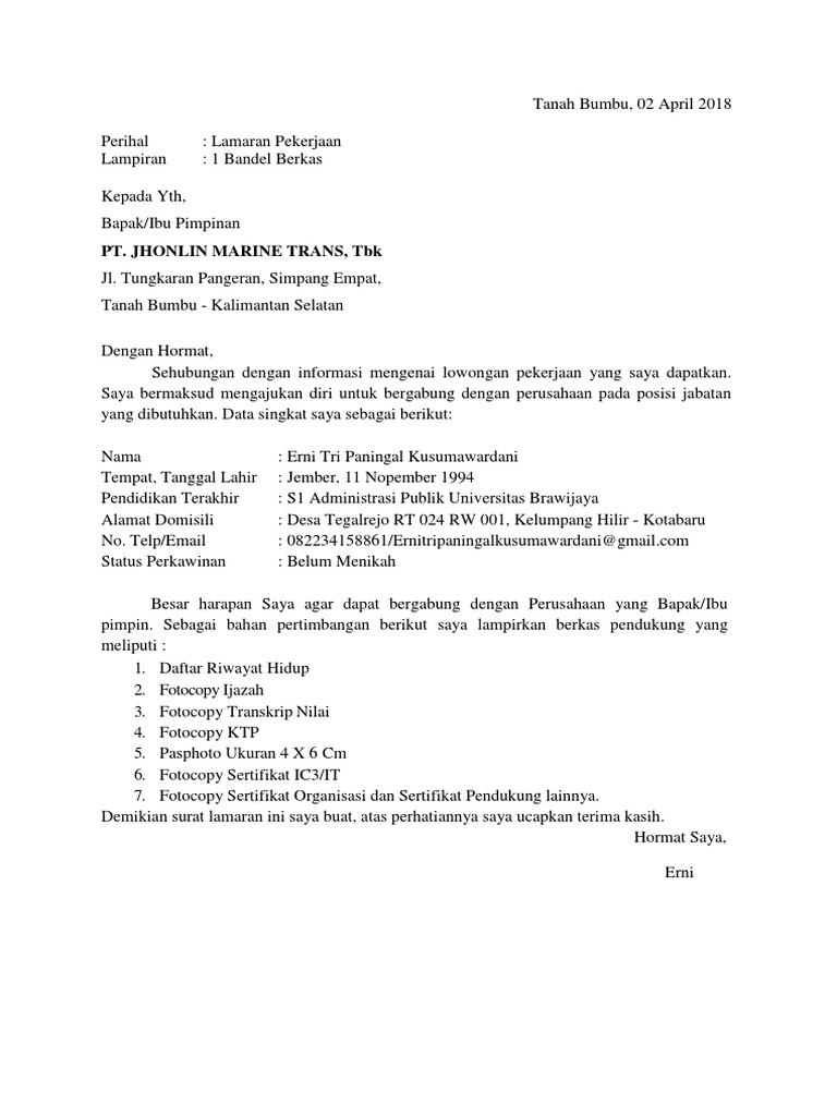 DOC) SURAT LAMARAN KERJA bg angga | teday teday - Academia.edu