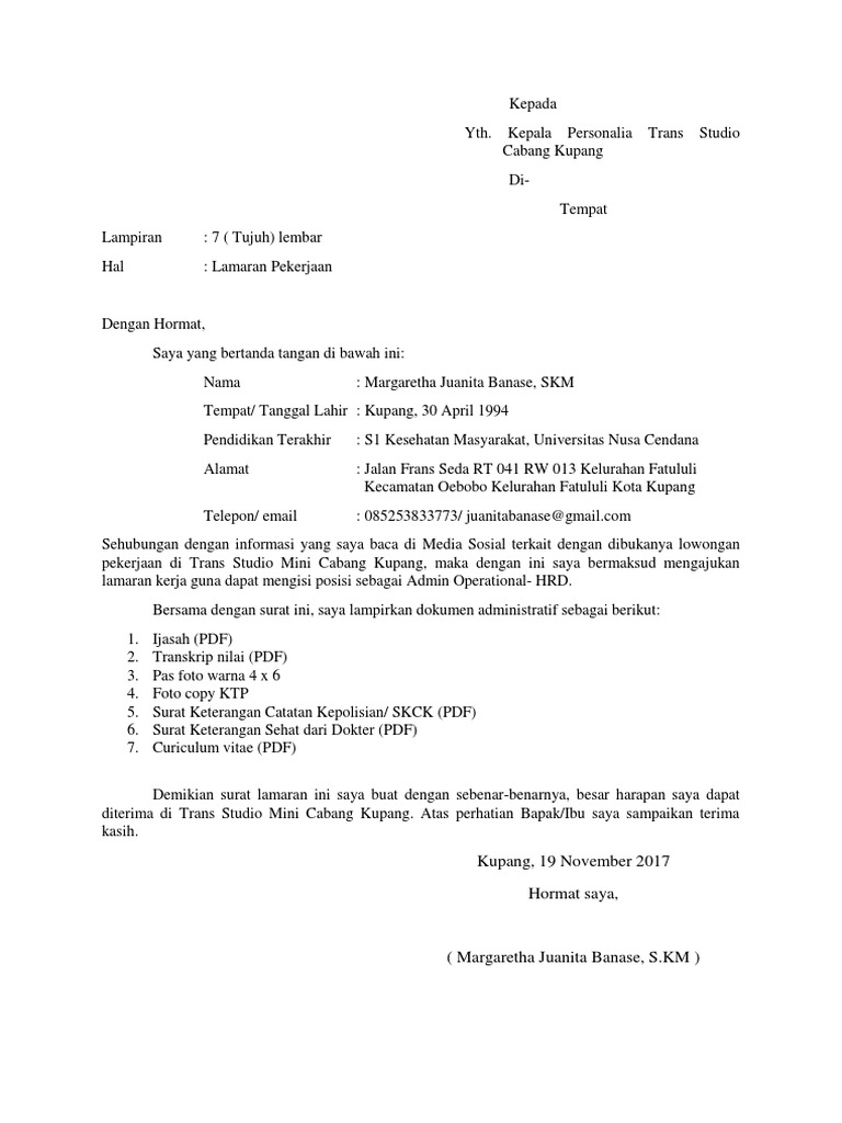 Contoh Surat Lamaran Kerja Ke Trans 7 - PUSATRIK.COM