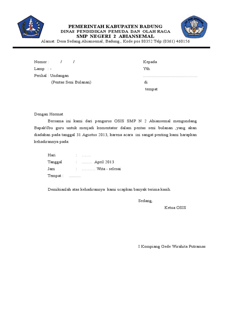 Contoh Surat Undangan Pensi