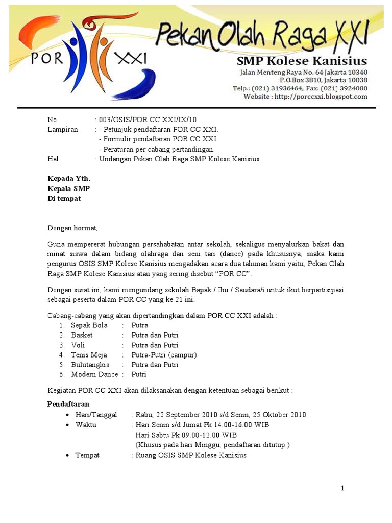 Contoh Surat Resmi Pertandingan Volly Contoh Ww – Cute766