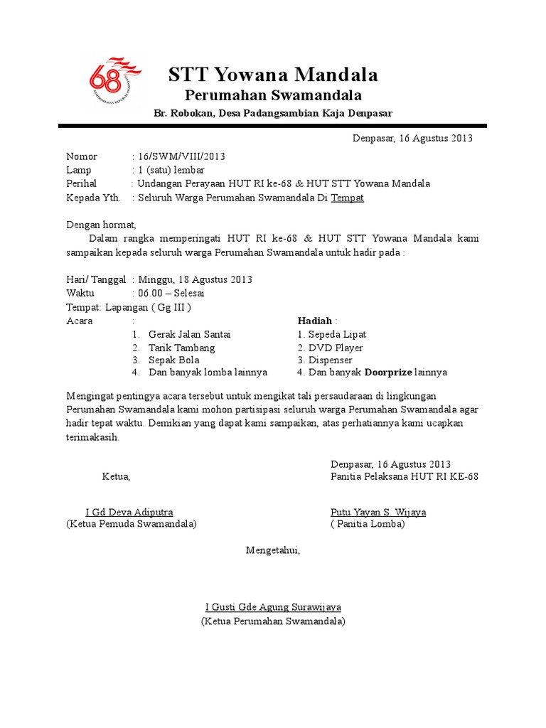 Contoh Surat Undangan Persiapan Hut Ri – Backup Gambar