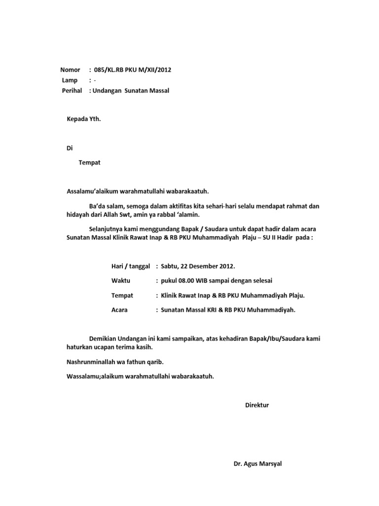 Contoh Surat Undangan Khitanan Massal - Sample Surat Undangan