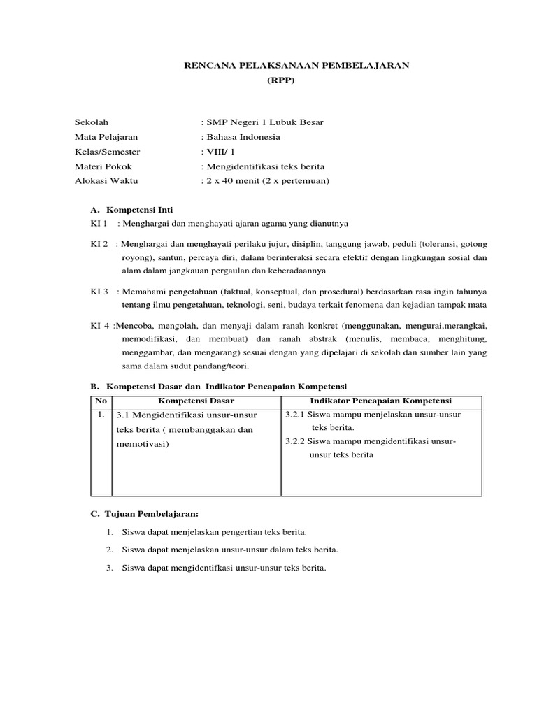 GURU BERBAGI | RPP BDR PEMBELAJRAN TEKS BERITA KELAS VIII/1