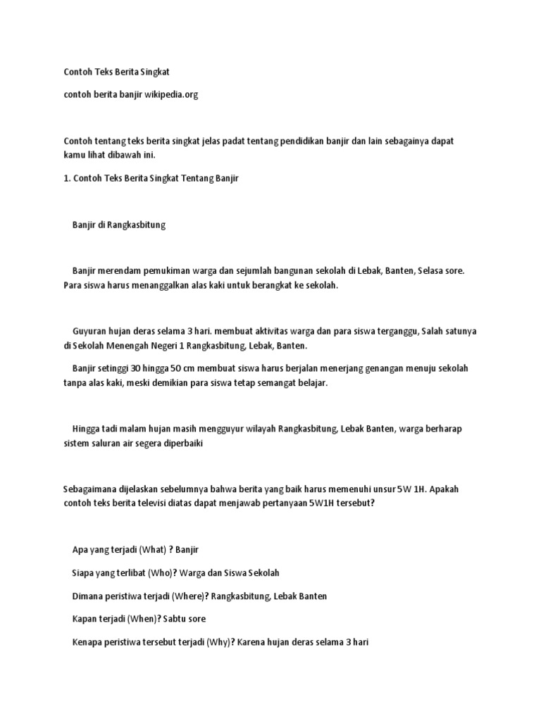 DOC) TEKS BERITA TENTANG BANJIR | yulianto edy - Academia.edu