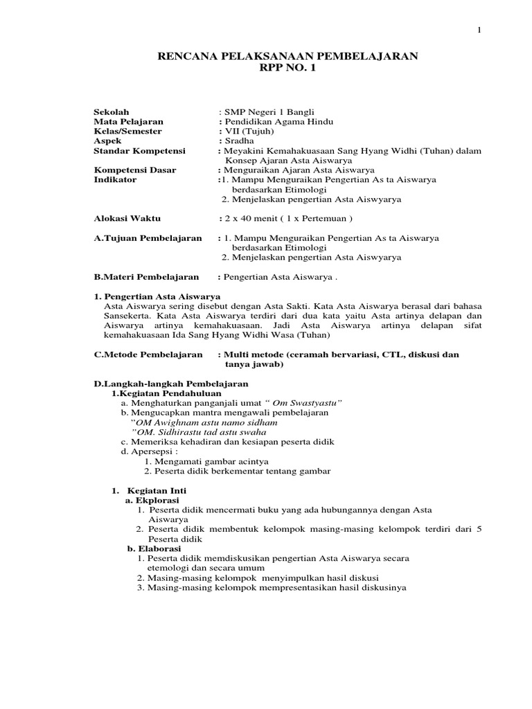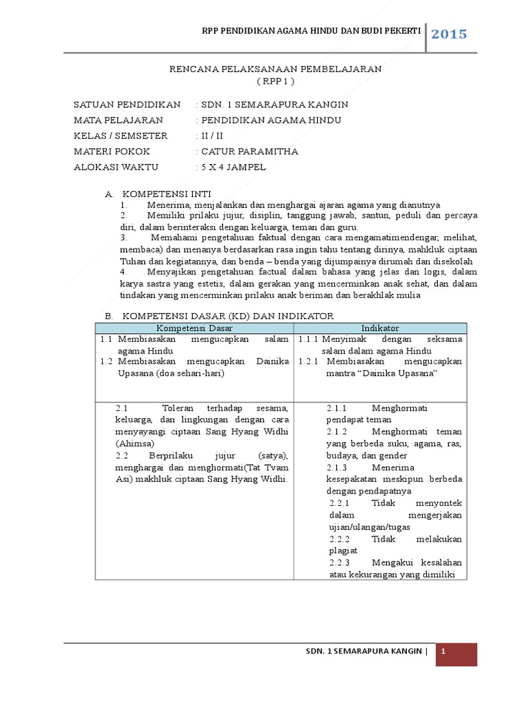 Rpp Agama Hindu Kls 1 2014