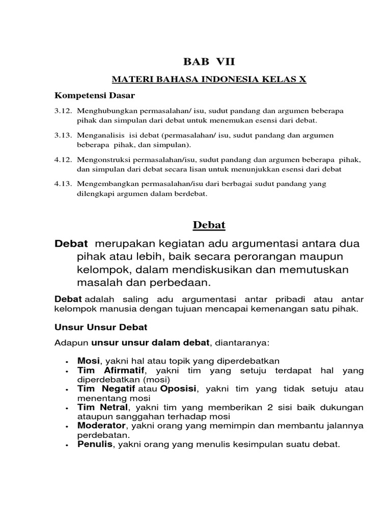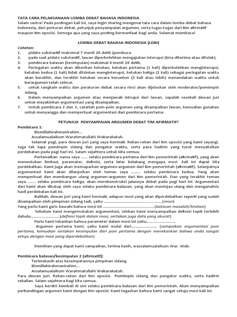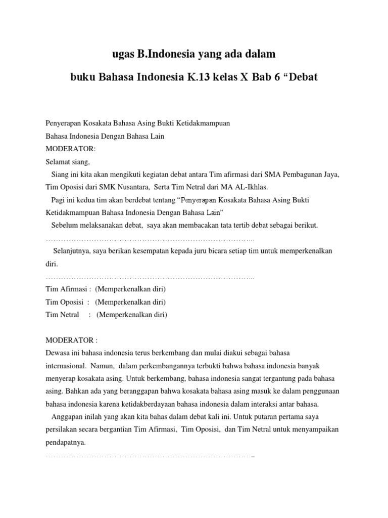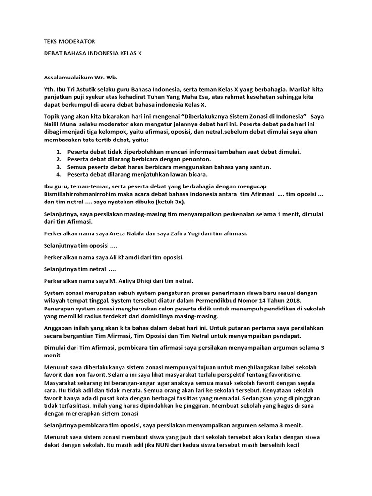 DOC) TEKS MODERATOR DEBAT BAHASA INDONESIA KELAS X | faisal saitama - Academia.edu