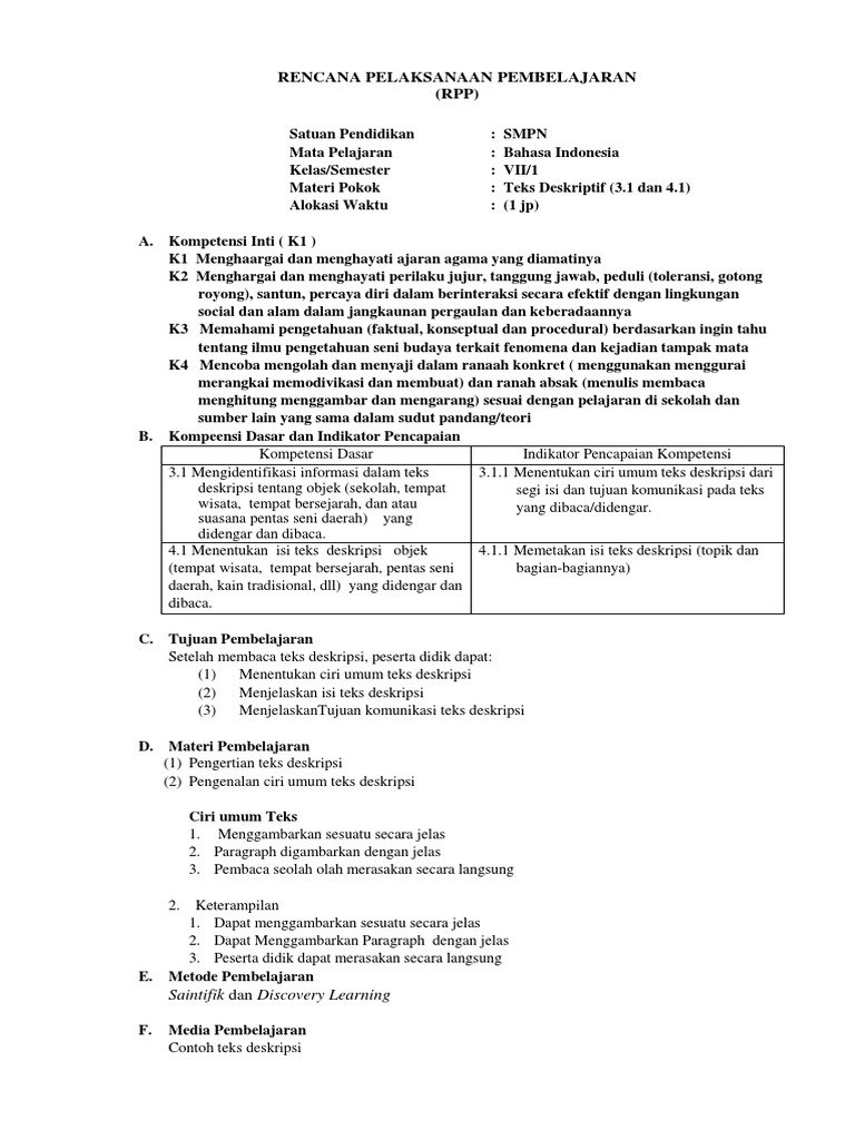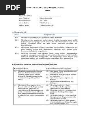 RPP KD 3.2 Dan KD 4.2 (Teks Deskripsi)