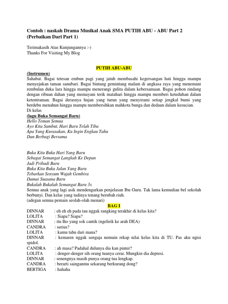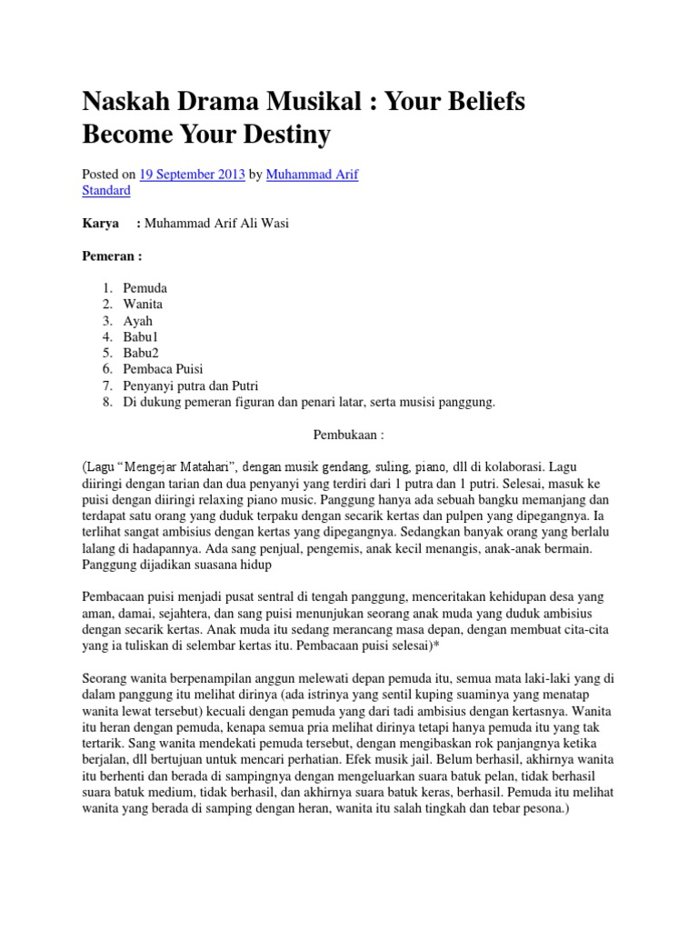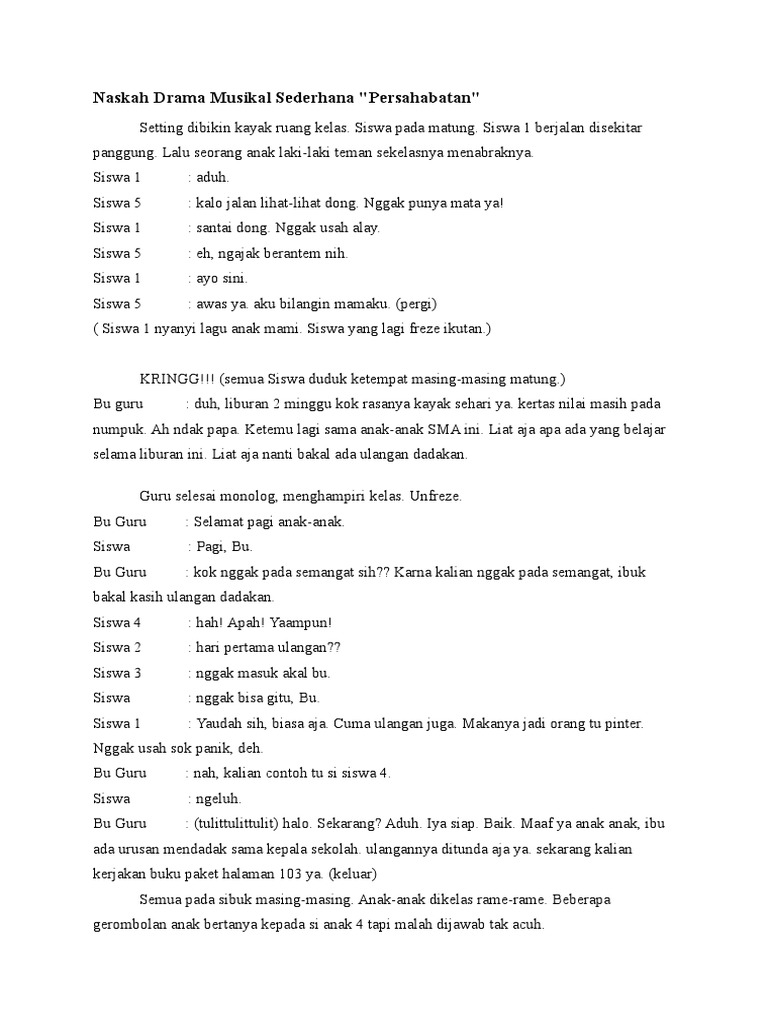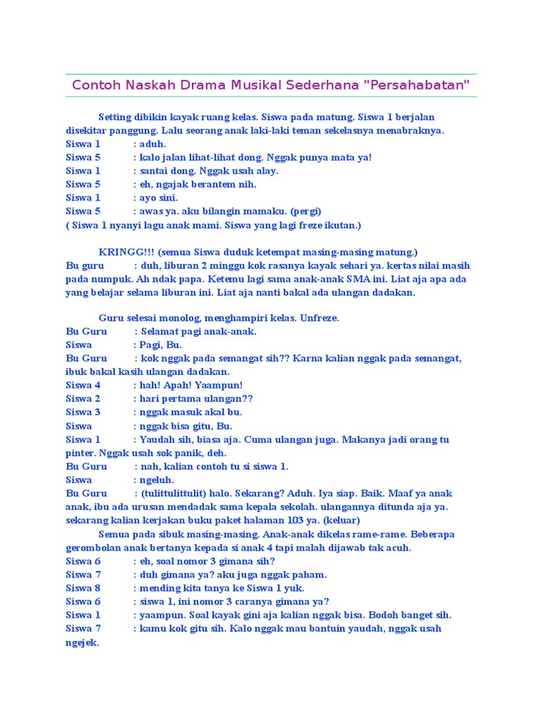 DOC) Contoh naskah drama musikal | Zifara Diba Oktari - Academia.edu