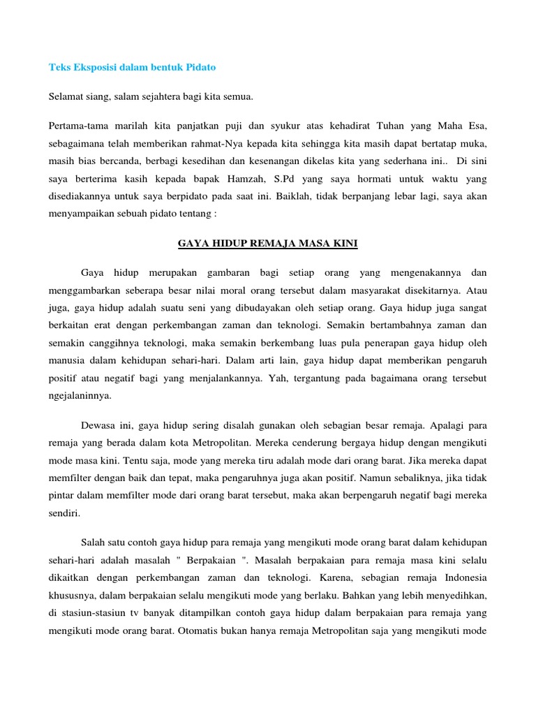 Pidato Gaya Hidup Remaja Masa Kini By : Eliezer SMK N 2 Batam